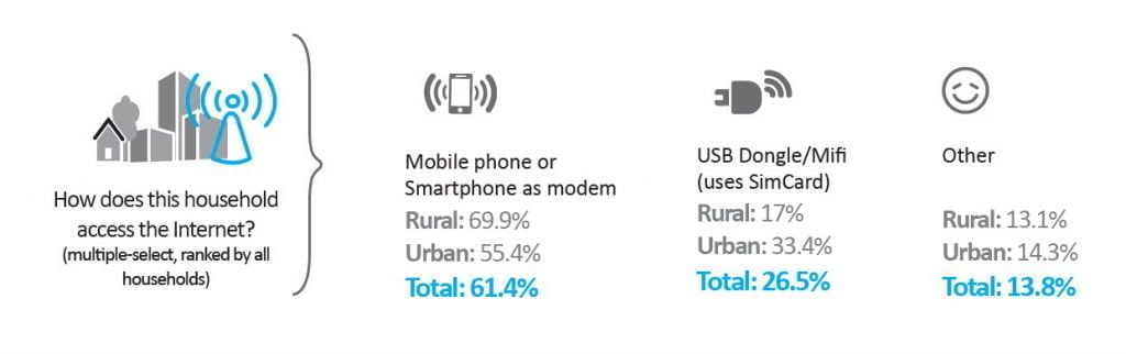 indicated below. Using a mobile phone or smartphone as a modem was the most common method (61.4%),