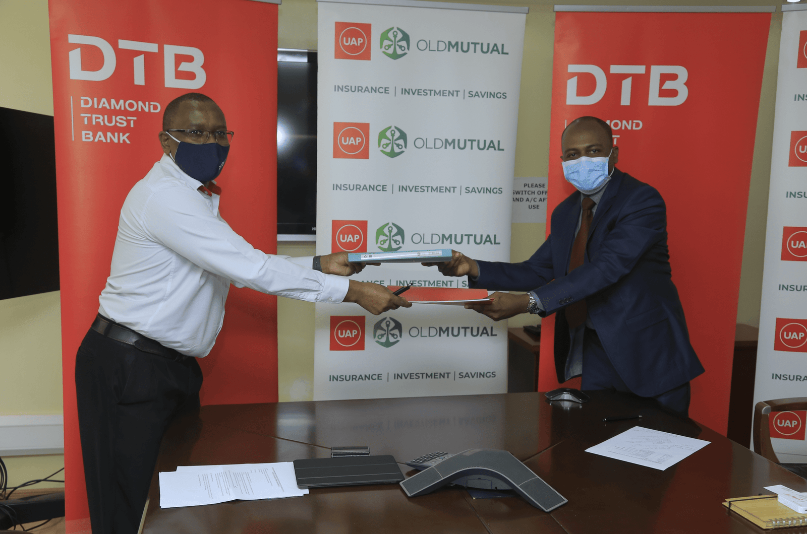 The partnership was signed today at Diamond Trust Bank Head office on Kampala road and was officiated by Mr. Maina Kariuki the Executive Director of DTB and Mr. Harrison Gongo the Managing Director UAP Old Mutual Life Assurance Uganda limited.