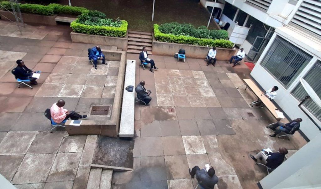 Yes, we are happy that government civil servants are practicing safe social distancing but one cannot fail to ask why the meeting that was held this morning was not conducted online via teleconference? The meeting that was attended by the ICT Minister Judith Nabakooba and state minister Mr Ogwang with their department heads at the ministry’s office quadrangle. The aim was for top management team discuss a way forward on how they can curb the coronavirus pandemic by implementing yesterday’s presidential directives to all Ministries.