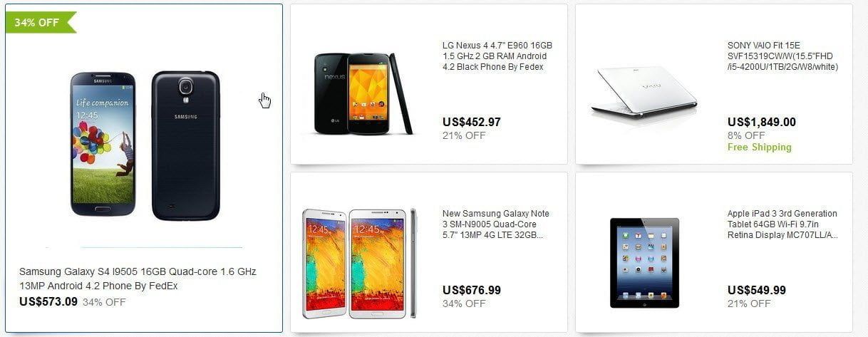 You can get a Galaxy S4 at 34% discount at only $573.09 (UGX 1.4m), a Sony Xperia Z Ultra at $530.1 (UGX 1.32m) which they claim is 45% discount or Sony Xperia M Dual C2005 5MP Android Black Dual Sim 4″ LCD Smart Phone US$253.30 (UGX 635,000) 17%OFF.