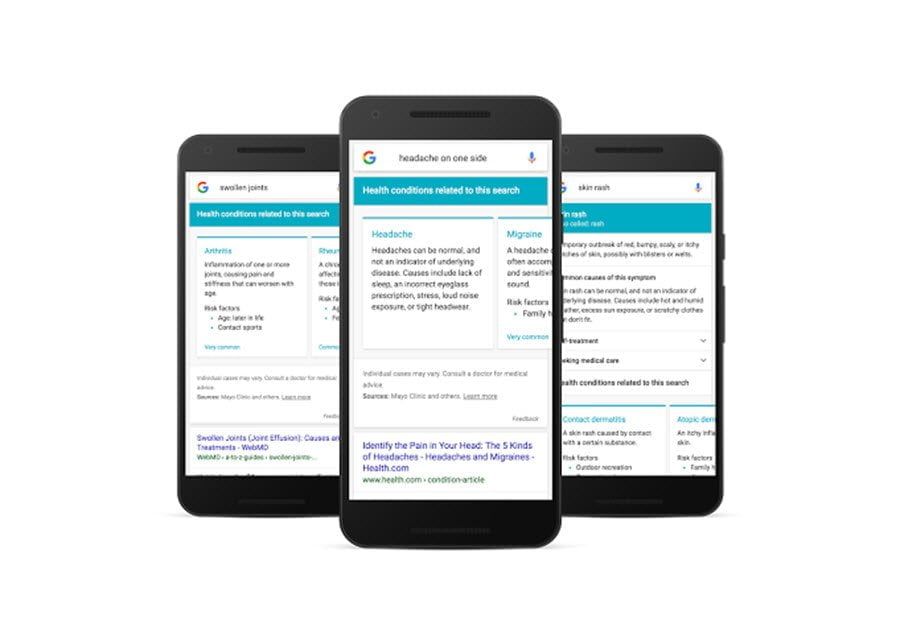 According to Google’s blogs, the company is rolling out a feature called symptom search, which is designed to show better results on the Google app for iOS or Android. A search that includes a description like “child with knee pain” will return a list of related conditions.