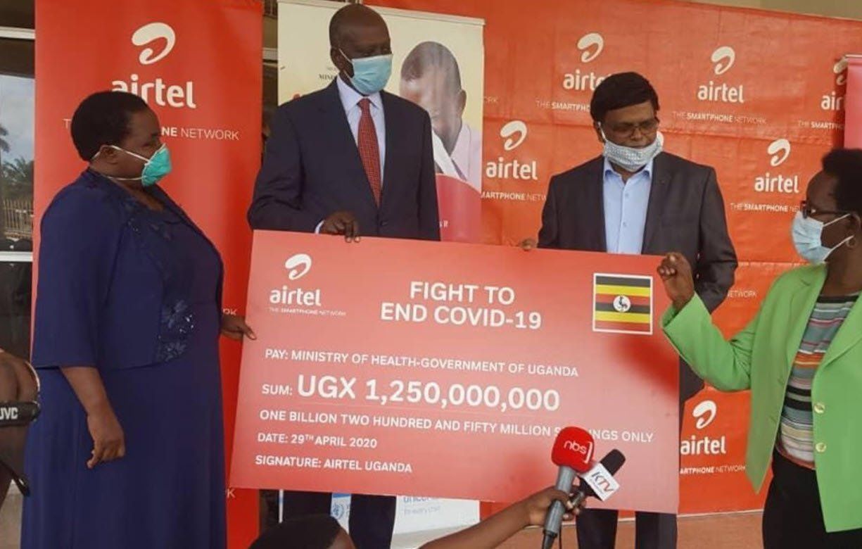 In what appears to be a show of muscle from telecom giants, Ugandans seem to be benefiting big from the COVID-19 donations. The lastest donations come in from Airtel Uganda which handed the response fund members a dummy cheque of UGX 1.25Bn from the red telecom.