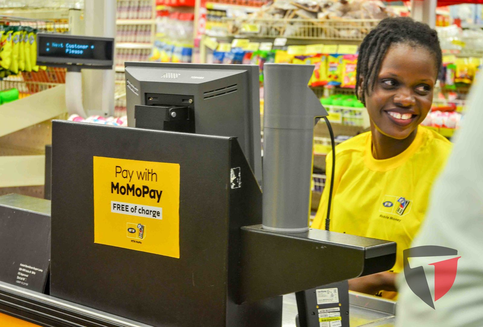 At the ShopRite stores, you just have to let the retail cashier know that you will use your MoMoPay wallet to clear for the goods, upon which you will be asked to enter your mobile number into the POS system, after which you will confirm the transaction by entering your PIN on your mobile.