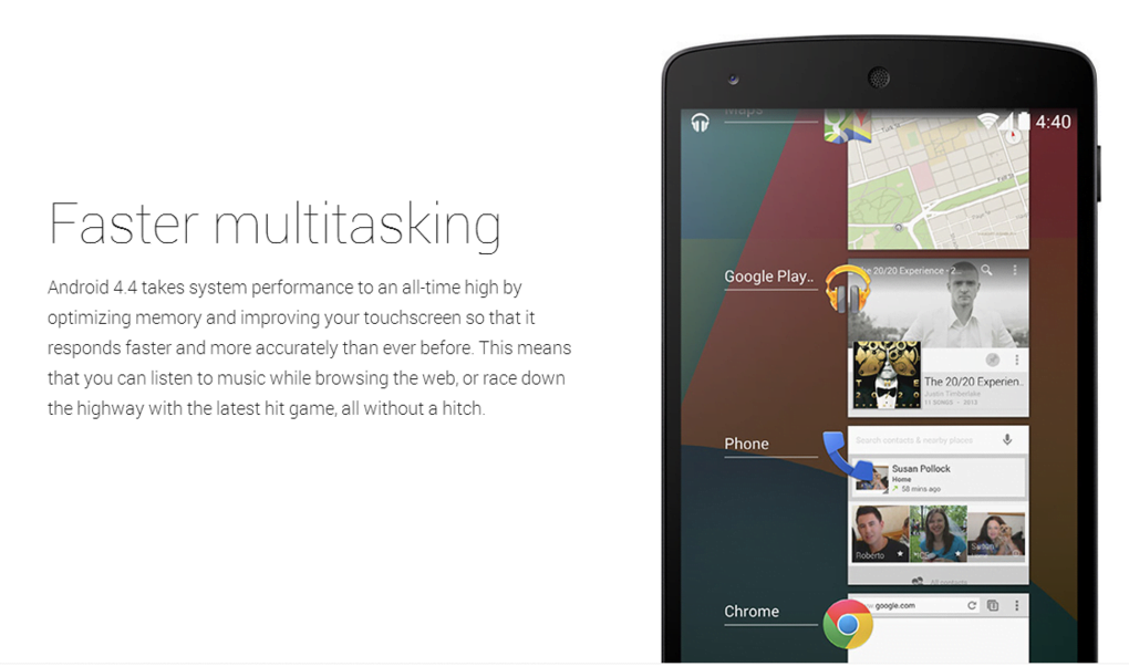task-switching UI is lighter and easier, among many other things. Make no mistake Pichai says KitKat is still “