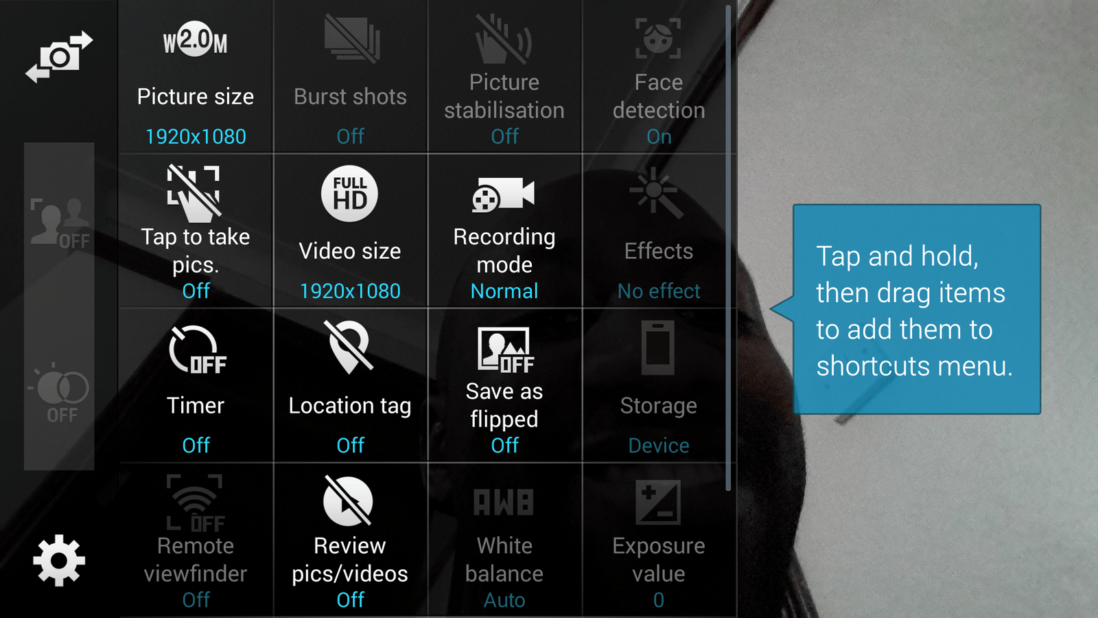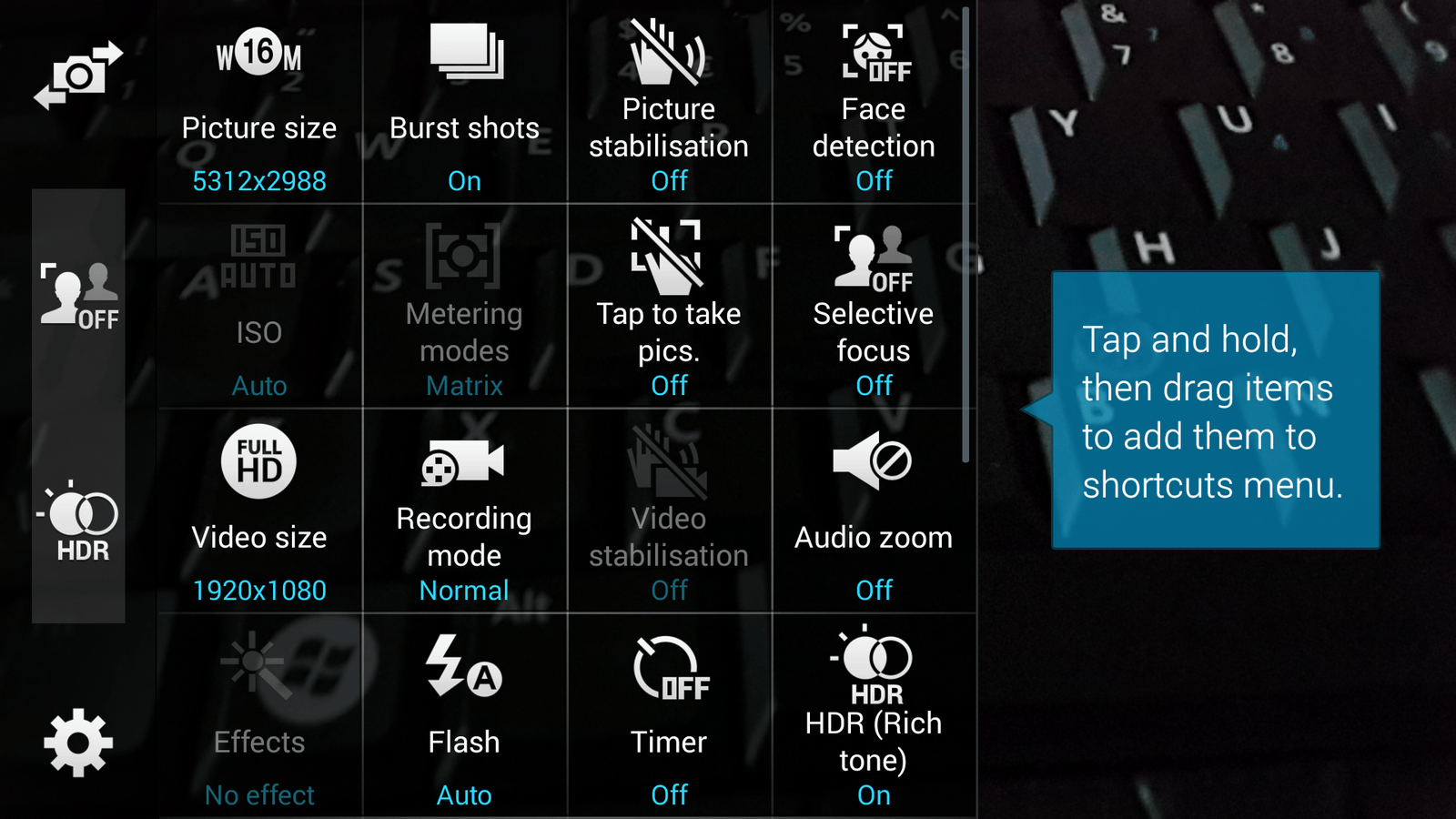This is no surprise coming from Samsung, the Galaxy Note 3 has a great camera because it shot 4K video and this new S5 is another step up. You can shoot HD, FullHD and 4K video at a 16:9 aspect ratio at 2160p@ 30frames per second. This new shooter comes with an advanced flash, rapid and selective focus, advanced HDR processing and Samsung’s usual bevy of shooting modes. This includes a super fast burst mode that took 30 shots in a period of 4 seconds and a whole bunch of other features like face detection, Beauty Face, Panorama, Virtual Tour Shot and the list continues. All of this is neatly wrapped up in Samsung’s traditional easy to use view finder. You can see the view finder UI and settings in the images below.